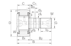 螺栓型滾輪 KRV90-PP, 軸向引導(dǎo),滿裝滾針,兩側(cè)用塑料推力平墊圈